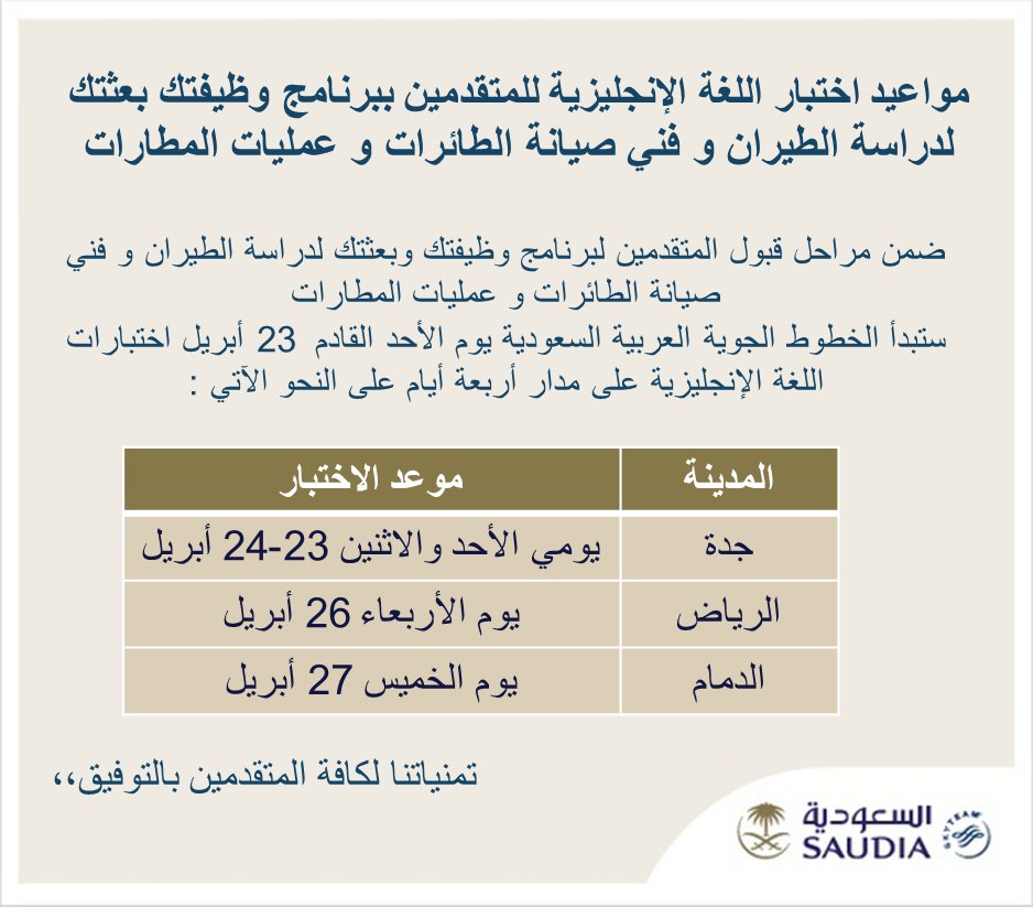 السعودية Saudia On Twitter تحديد مواعيد اختبار اللغة