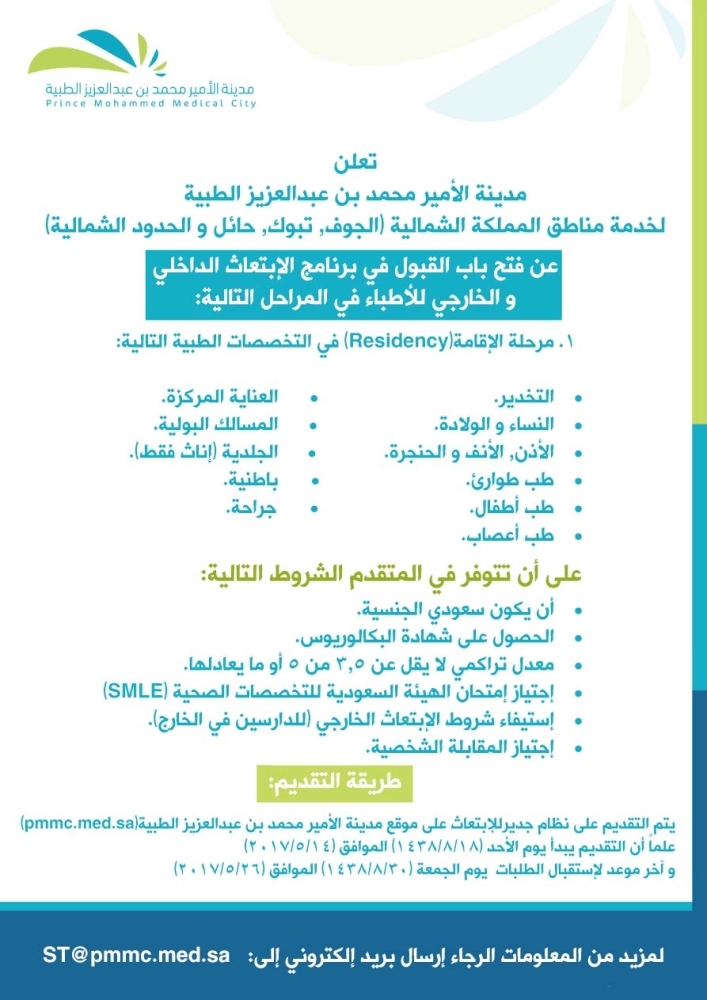 مدينة محمد بن عبد العزيز الطبية تفتح باب القبول والإبتعاث