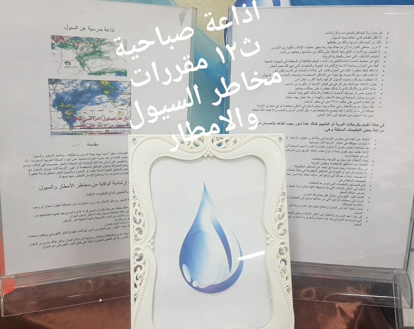 إقامة إذاعة مدرسية بعنوان مخاطر الأمطار والسيول في المتوسطة