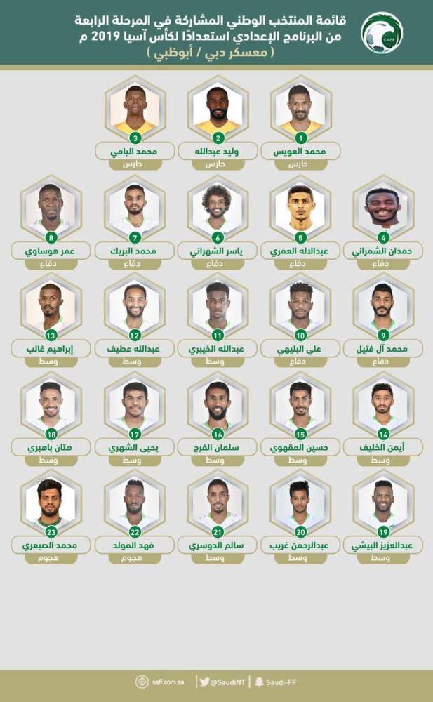 تعرف على قائمة المنتخب السعودي المشارك في كأس آسيا 2019 أخبار