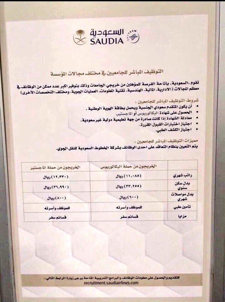 بندر السليس בטוויטר الخطوط الجوية السعودية تعلن عن وظائف مباشرة
