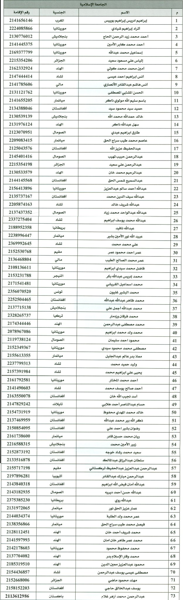List Of Accepted Students At Madeenah Islamic University Saudi Arabia 1434 1435 2013 2014 Bakkah Net